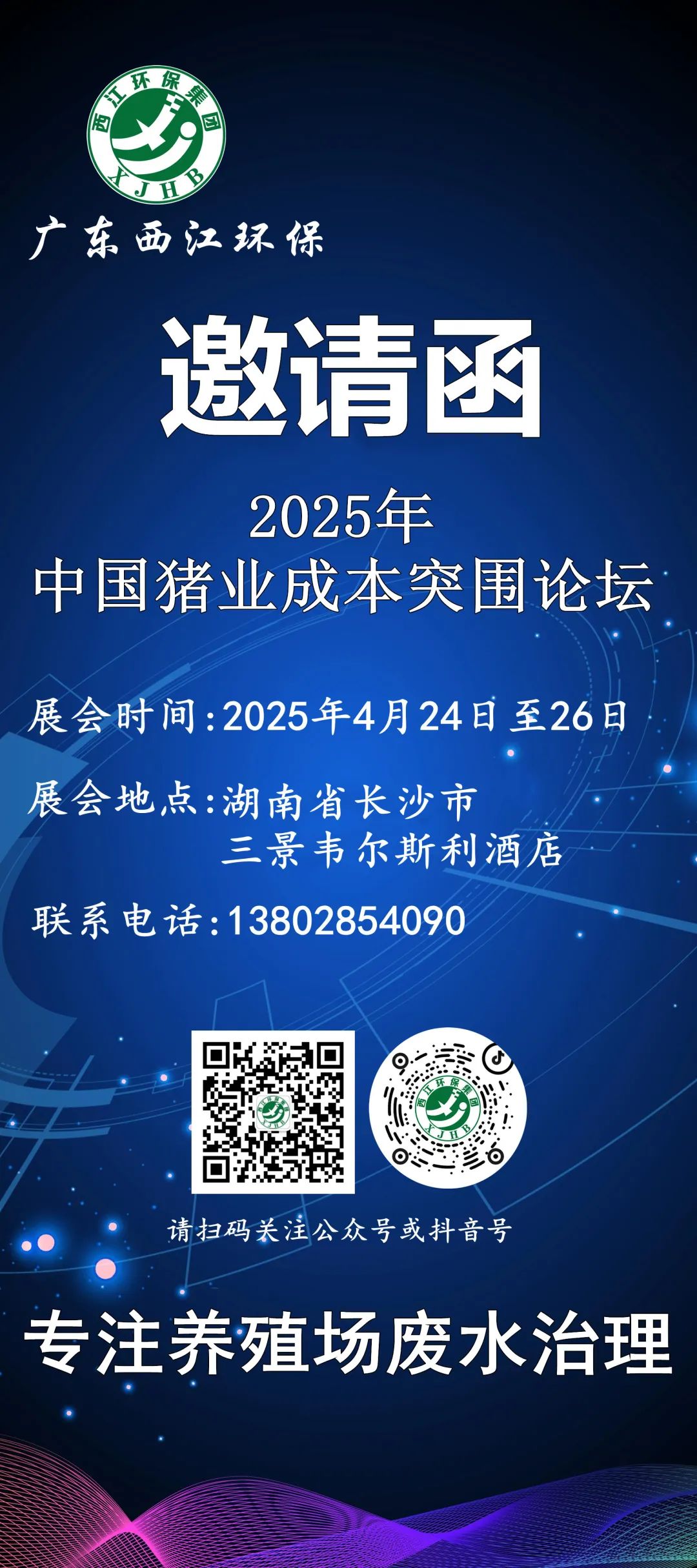廣東西江環(huán)保誠(chéng)摯邀請(qǐng)您參加2025中國(guó)豬業(yè)6元成本突圍論壇
