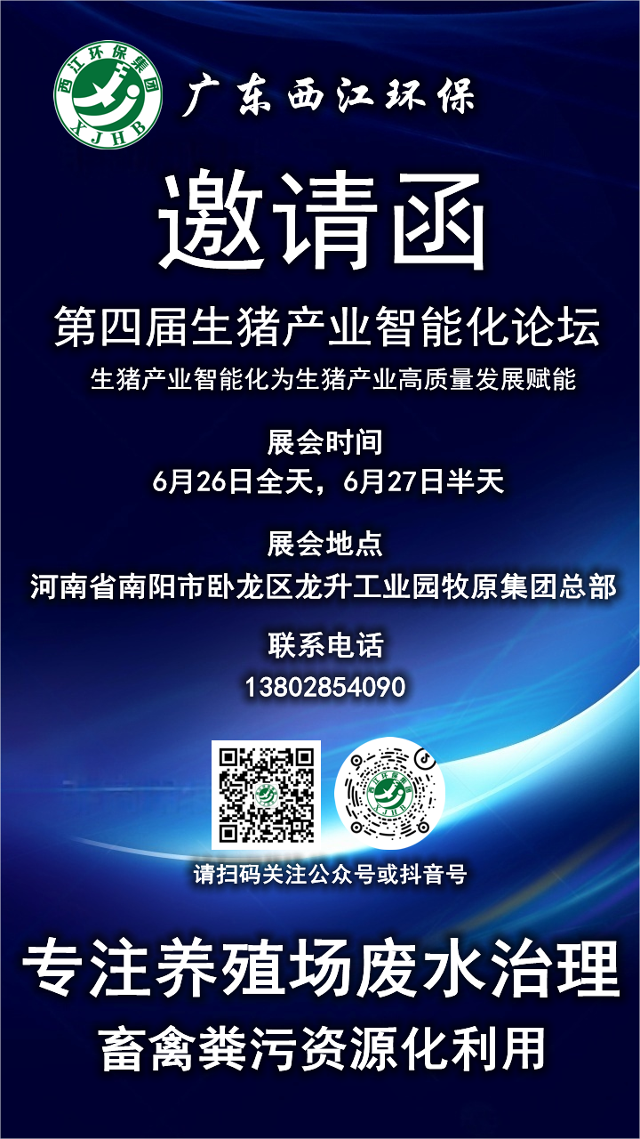 廣東西江環(huán)保誠邀您撥冗出席河南省南陽市第四屆生豬產(chǎn)業(yè)智能化論壇